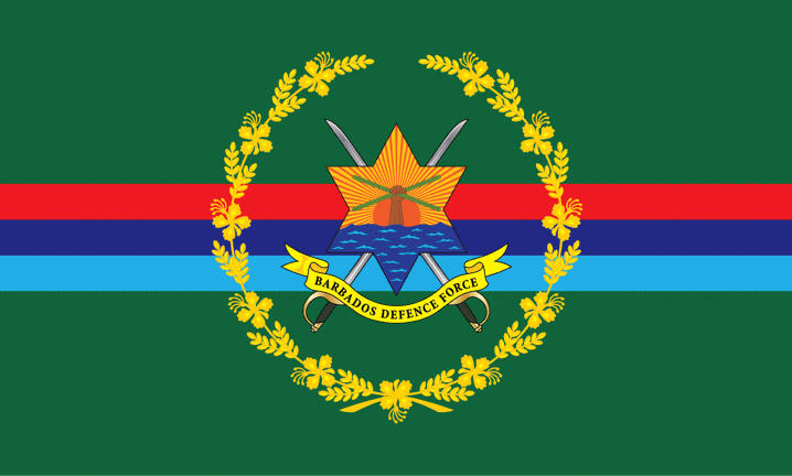 with the full emblem of the Barbados Defense Force. The flag is used by the