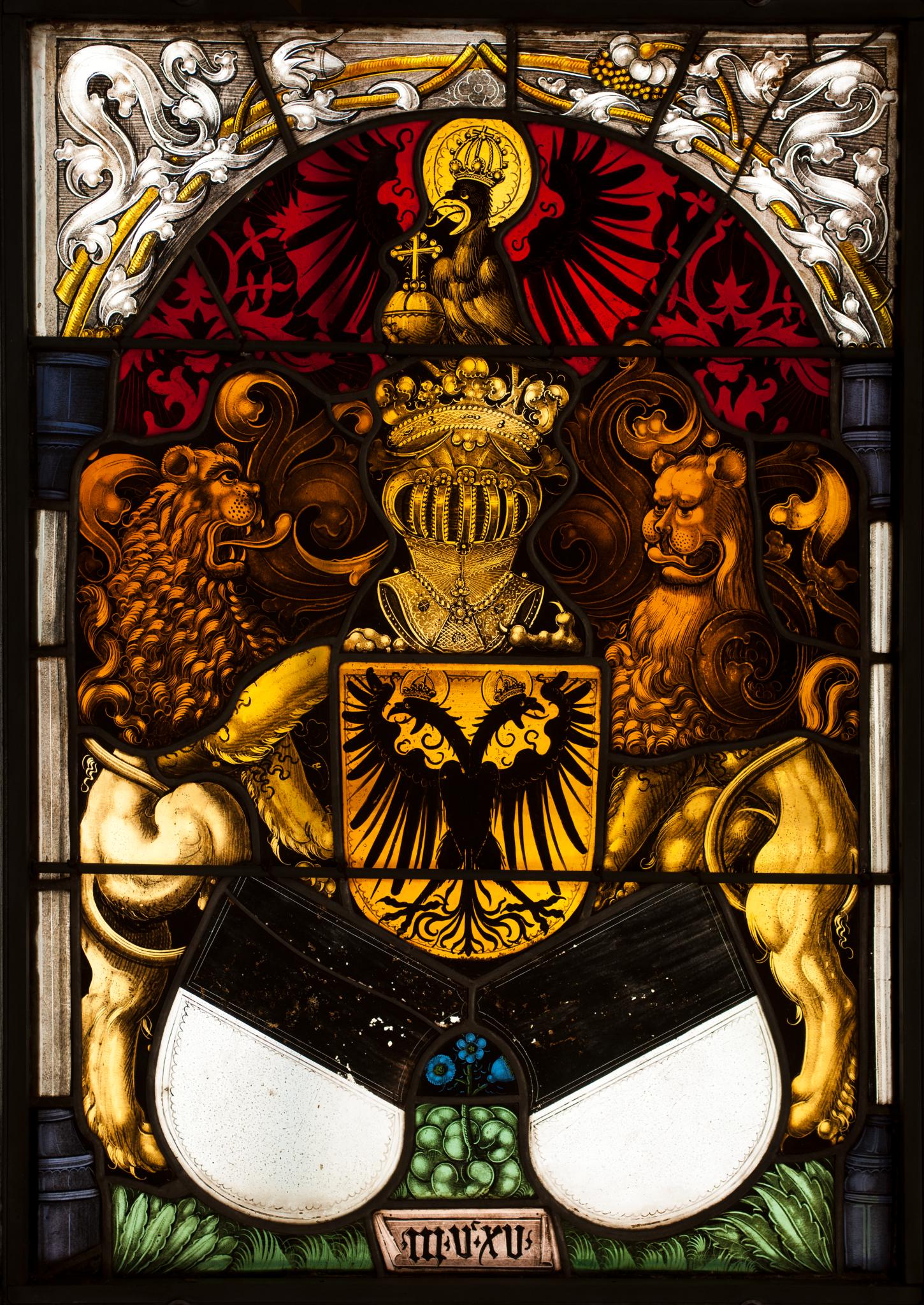 imperial orb. A small scroll at the bottom shows the year MVXV. Location: church of Jegenstorf BE