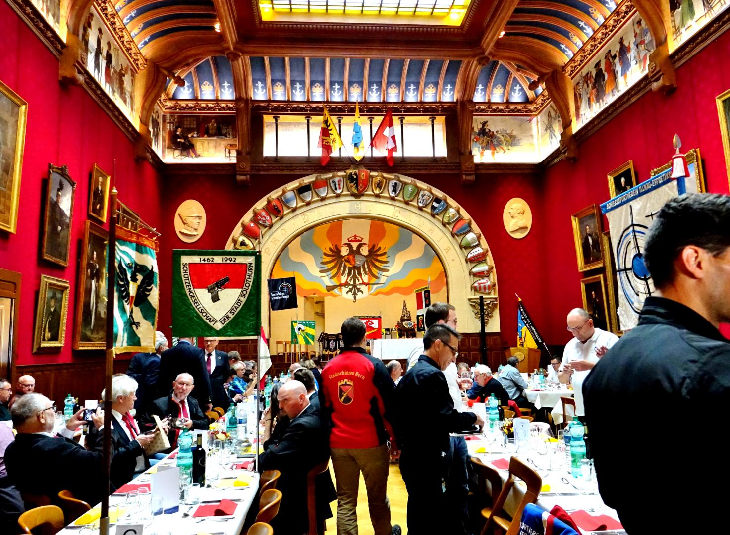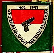 fusion of four cantonal shooting associations. The square flag shows the coat of arms of the ten