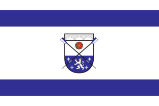 The white flag was parted by two blue horizontal stripes. On centre between the stripes was a shield parted per fess of white and blue.