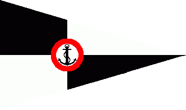 The burgee (pennant) was off-centred quartered of black and white. On the common point of all quarters was a black fouled anchor on white backgroiund in a red annulet.