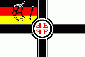 The upper hoist quarter was a black-red-yellow tricolour. The colours in canton are those of the German athletics movement. On lower fly was the black circle of the fraternity.
