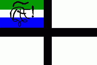 The white flag was parted by a centred black cotized cross. The upper hoist quarter was horizontally parted white-black-green-white.