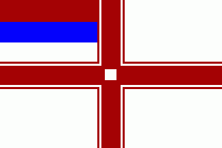 The red flag was parted by a white centred cross, on its centre superimposed by a white disc charged with a smaller red disc.