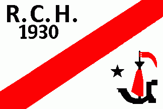 It was a white flag parted by a red bend sinister, on upper hoist black inscription "R.C.H." (1st line) "1930"(2nd line).