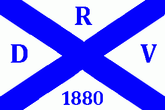 The white flag was parted by blue saltire with blue inscriptions on every quarter as follows: "D"(hoist), "R"(top), "V"(fly) and "1880"(bottom).