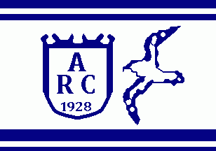 Between both is a stylised blue shield crested with a crown and inscription "ARC" in triangle over "1928" (smaller).