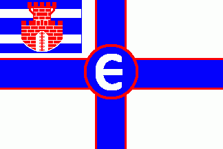 On centre on a blue disc fimbriated red was a white "E".