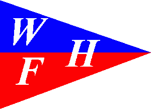 The pennant is orizontally parted of blue and red, charged with white serifed Italics "W"(upper hoist), "F"(lower hoist) and "H"(vertically centred and shifted to fly).