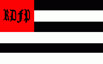 The flag was horizontally parted by six stripes alternating of black and white. On red canton was a black Gothic inscription "RDFP".