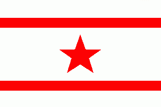It was a white flag parted by two red horizontal stripes. Between the stripes was on centre a red 5-point star.