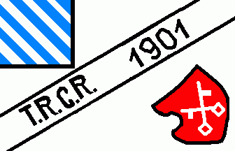 It was a 13-stripes flag horizontally divided by alternating red and blue stripes. On centre was a white star with blue inscription "R.C."(1st line) "J"(2nd line).