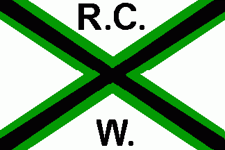 The green flag is divided per band by a white stripe. In this stripe are green capitals "ARCW".