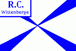 The canton was white with blue bordures inside and a blue inscription "R.C." (1st line) "Wittenberge" (2nd line).