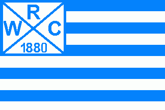 On white canton with blue edges and parted by a thin blue saltire was a blue inscription "W"(hoist), "R"(top), "C"(fly) and "1880"(bottom).