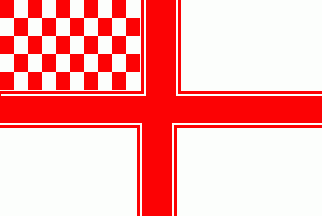 The white flag was parted by a red centred cross cotized white-red. The upper hoist quarter was chequered of red and white.