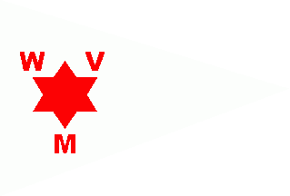 It was a white pennant. Shifted to hoist was a red 6-point star surrounded by red initials "W"(above left), "V"(above right) and "M"(below).
