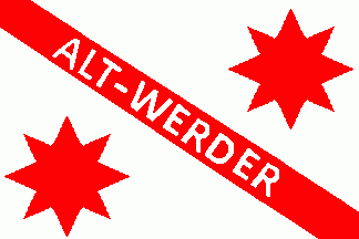 The flag reported 1927 had an add additional white inscription "ALT-WERDER" on the red bend.