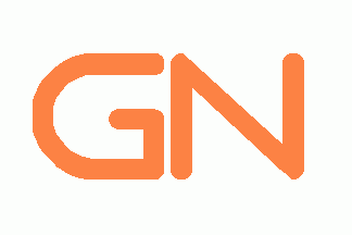 The company has a logo flag displaying on a white cloth orange initials "GN".