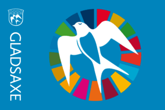 Alongside the hoist is a white inscription "GLADSAXE" and in canton is a white logo version of the coat of arms.