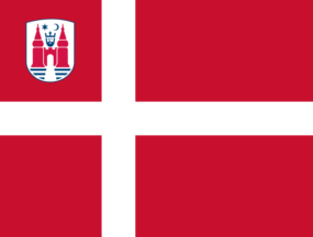 It is a rectangular national flag (Danish: stutflag) with the municipal arms in logo style in canton.