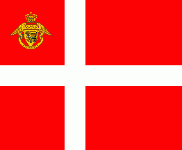 Any wing flag is red divided by an off-centred white cross patty. On upper hoist is the badge of the Air Force in proper colours.