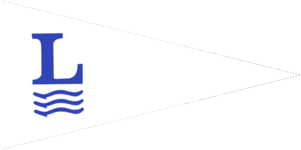 The pennant is white. Shifted to hoist ia a blue serifed initial "L" over three blue wavy lines. The club is based in Aalborg.