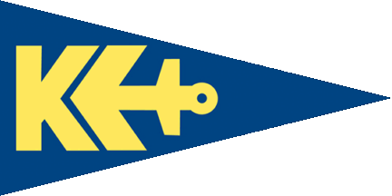 The pennant is blue, at hoist is a yellow initial "K" annexed by a horizontal yellow anchor.