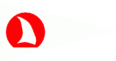 The pennant is white. Shifted to hoist is a red disc cut at bottom and charged with a white sail. The club is located in Aarhus.