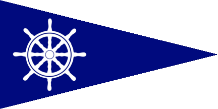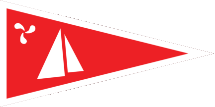 The pennant is red with white fimbriation. Shifted to hoist are two white sails. In canton is a ship propeller.