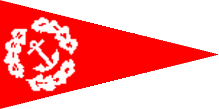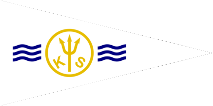 The pennant is white. In a golden yellow annulet is trident of the same flanked by letters "K" and "S". The annulet is flanked by blue waves.