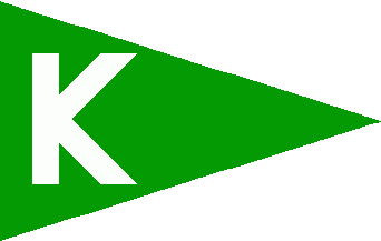 It is a green-white-green pennant with ratio ca. 3:5:3, tapering, with over all "K" over "B" at the hoist and a fish from 1/6th of the length to 2/3 of the length in the