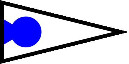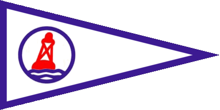 The pennant is white with dark blue fimbriation. Shifted to hoist in a dark blue annulet is a red buoy over dark blue waves.