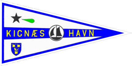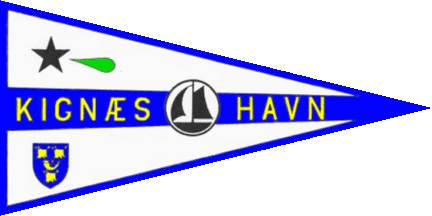 The pennant is is white, either fimbriated blue (see left image above) or cotised white-blue (see right image above) and parted by a blue horizontal stripe with yellow inscription "KIGNÆS" and "HAVN".