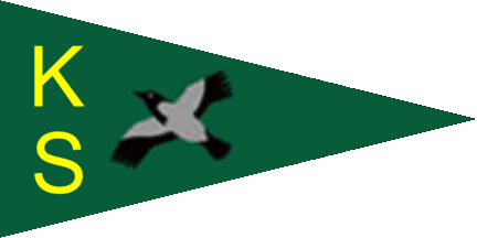 The pennant is white with a blue bordure and red serifed initials "KS" shifted to hoist.