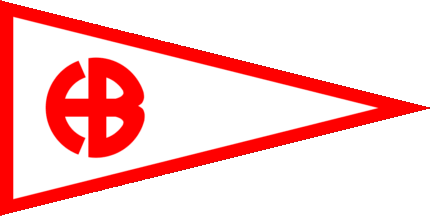 The pennant is white fimbriated red with a red logo, of connected initials "HB" all put into a circle shape, The guild is based in Odder.