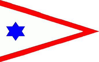 The pennant is white with red fimbriation at top and bottom and a blue 6-point star shifted to hoist.