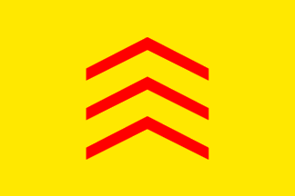 of the municipal arms, "Or three chevrons gules".