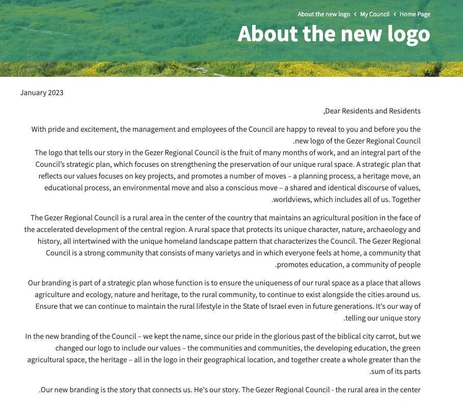 About the new logo (gezer-region.muni.il, 2023, Hebrew | English translation)