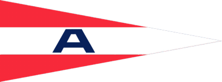 The flag of Asker Seilforening from Vettre in Asker Municipality is a horizontally banded pennant, red-white-red with a dark blue A on the white stripe.
