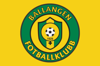 The flag of Ballangen FK (Ballangen Fotballklubb) from Ballangen in Narvik Municipality, ex Ballangen Municipality, is yellow with the badge centered.