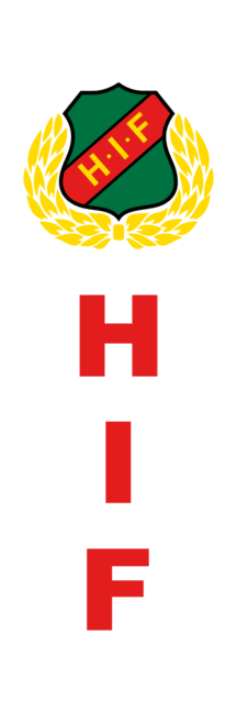 The flags of Heimdal FK (Heimdal Fotballklubb) from Trondheim are green with the badge centered, or vertical white with the badge above the abbreviation HIF.