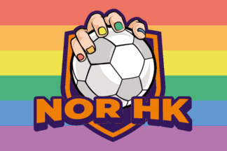 The flags of NOR HK (NOR Håndballklubb, Narvik/Ofoten-Regionen Håndballklubb) from Narvik blue or rainbow-striped with the logo centered.