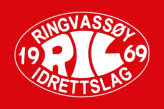 The flags of Ringvassøy IL (Ringvassøy Idrettslag) from Hansnes on Ringvassøya Island in Karlsøy Municipality are red or white with the logo centered in the opposite color.