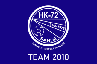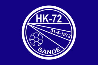 The flags of HK-72, also HK-72 Sande, handball club from Sande in Holmestrand Municipality, ex Sande Municipality (Vestfold) are dark blue with the badge centered.