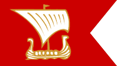 The flag of Sandefjord Seilforening from Sandefjord is blue with a thin blue-white border, the name in white and a red flag showing a Viking longship.