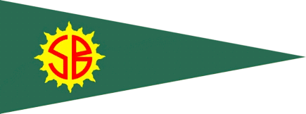 The flag of Solviken Båtforening from Horten is green with the logo consisting of red letters S B in a yellow sun.