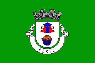 Mural crown Argent with four visible towers (town rank) and white scroll reading in black upper case serifed letters "RERIZ".