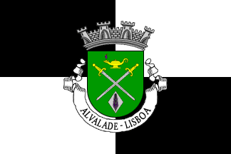 Mural crown Argent with four visible towers (town rank) and white scroll reading in black upper case letters ALVALADE - LISBOA.