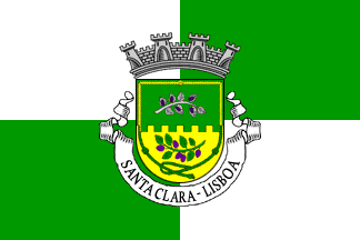 Mural crown Argent with four visible towers (town rank) and white scroll reading in black upper case letters "SANTA CLARA - LISBOA".